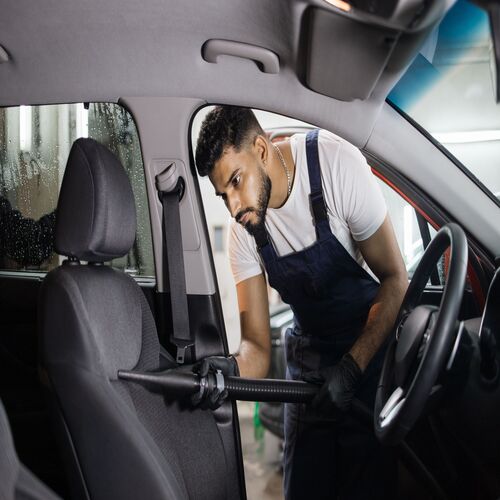 Aspiration soignée des sièges afin de retirer poussières et saletés avant l’injection-extraction.